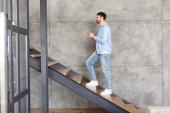 Zdjęcie "Osoba w czerwonym swetrze i dżinsach stoi plecami do widza, pukając do drewnianych drzwi w minimalistycznym pokoju. Ściany są białe, a podłoga drewniana." może być wykorzystywane do celów osobistych i komercyjnych zgodnie z warunkami zakupionej licencji Royalty-free. Obraz jest dostępny do pobrania w jakości wysokiej rozdzielczości do 5760x3840.