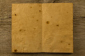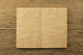 Otwórz stary sztuka książki na wieku drewniane tła. Dwa czyste kartki papieru.