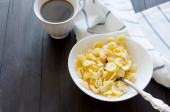 płatki w postaci czaszki i kości z mlekiem na śniadanie