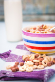 płatki w postaci czaszki i kości z mlekiem na śniadanie