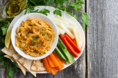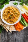 Zdjęcie "Tradycyjne hummus w misce chleb pita i warzywa" może być wykorzystywane do celów osobistych i komercyjnych zgodnie z warunkami zakupionej licencji Royalty-free. Obraz jest dostępny do pobrania w jakości wysokiej rozdzielczości do 5760x3840.