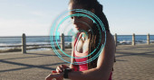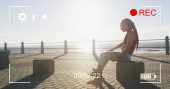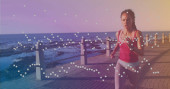 Zdjęcie "Pijąca kobieta czerwono-polka-top jeansowa kamizelka trzymająca papier i kubki podróżne na promenadzie, cyfrowe nakładki. Wybrzeże, promenada, plecak, dżinsowe, swobodny, słoneczny, spokojny" może być wykorzystywane do celów osobistych i komercyjnych zgodnie z warunkami zakupionej licencji Royalty-free. Obraz jest dostępny do pobrania w jakości wysokiej rozdzielczości do 5760x3840.