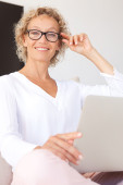 Zdjęcie "kobieta z okularów w gospodarstwie tabletki" może być wykorzystywane do celów osobistych i komercyjnych zgodnie z warunkami zakupionej licencji Royalty-free. Obraz jest dostępny do pobrania w jakości wysokiej rozdzielczości do 5760x3840.