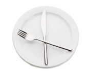 biały pustej płyty z widelcem i nożem na białym tle