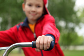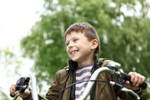 chłopiec na rowerze w parku Zielona