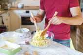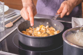 Zdjęcie "Mężczyzna przygotowuje kremowym sosem grzybowym" może być wykorzystywane do celów osobistych i komercyjnych zgodnie z warunkami zakupionej licencji Royalty-free. Obraz jest dostępny do pobrania w jakości wysokiej rozdzielczości do 5760x3840.