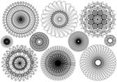 Zestaw fraktal i wirować kształt elementu. Vintage różnicowanie monochromatyczne