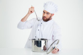 Zdjęcie "Mężczyzna kucharz kucharz gospodarstwa łyżka" może być wykorzystywane do celów osobistych i komercyjnych zgodnie z warunkami zakupionej licencji Royalty-free. Obraz jest dostępny do pobrania w jakości wysokiej rozdzielczości do 5760x3840.