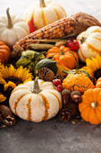 Zdjęcie "Dynie, indian corn i odmiany squasha" może być wykorzystywane do celów osobistych i komercyjnych zgodnie z warunkami zakupionej licencji Royalty-free. Obraz jest dostępny do pobrania w jakości wysokiej rozdzielczości do 5760x3840.