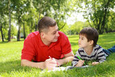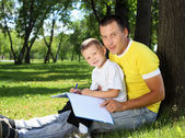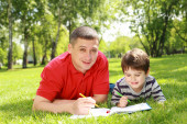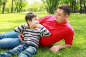 Zdjęcie "Ojciec z synem w parku" może być wykorzystywane do celów osobistych i komercyjnych zgodnie z warunkami zakupionej licencji Royalty-free. Obraz jest dostępny do pobrania w jakości wysokiej rozdzielczości do 5760x3840.