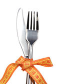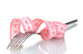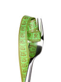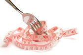 widelec i Miara zwijana na białym tle