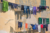 Zdjęcie "Suszenie spodnie w wąskiej uliczce" może być wykorzystywane do celów osobistych i komercyjnych zgodnie z warunkami zakupionej licencji Royalty-free. Obraz jest dostępny do pobrania w jakości wysokiej rozdzielczości do 5760x3840.