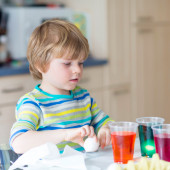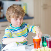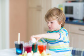 Mały chłopiec dziecko farbowanie jaj na Święta Wielkanocne