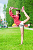 młoda kobieta robi ćwiczenia rozciągające