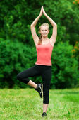 młoda kobieta robi ćwiczenia rozciągające