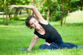 młoda kobieta robi ćwiczenia rozciągające