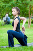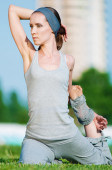 Zdjęcie "młoda kobieta robi ćwiczenia rozciągające" może być wykorzystywane do celów osobistych i komercyjnych zgodnie z warunkami zakupionej licencji Royalty-free. Obraz jest dostępny do pobrania w jakości wysokiej rozdzielczości do 5760x3840.