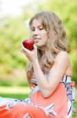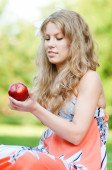 piękna kobieta z zielonym jabłkiem