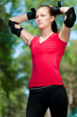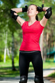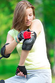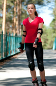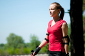 piękna kobieta lodowisko na rolkach w parku