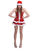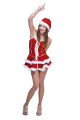 portret dziewczynka przebrana była w stroju santa gry z kulek