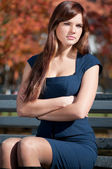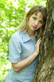 piękna młoda kobieta relaksu w ogrodzie drzewa jabłko