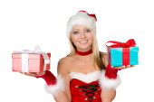 Zdjęcie "kobieta przebrana była w santa klauzuli sukienka z darów" może być wykorzystywane do celów osobistych i komercyjnych zgodnie z warunkami zakupionej licencji Royalty-free. Obraz jest dostępny do pobrania w jakości wysokiej rozdzielczości do 5760x3840.