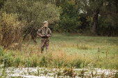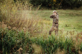 Hunter w kamuflażu Odzież gotowa na polowanie z karabin myśliwski