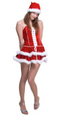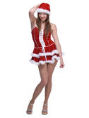 kobieta w sukni i prezenty torba na santa klauzuli