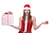 Zdjęcie "kobieta przebrana była w santa klauzuli sukienka z darów" może być wykorzystywane do celów osobistych i komercyjnych zgodnie z warunkami zakupionej licencji Royalty-free. Obraz jest dostępny do pobrania w jakości wysokiej rozdzielczości do 5760x3840.