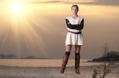 kobieta moda młody piękny pozowanie odkryty