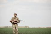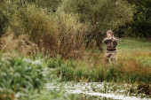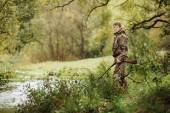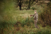 Hunter w kamuflażu Odzież gotowa na polowanie z karabin myśliwski