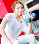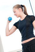 młoda kobieta robi hantle ćwiczenia