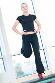 Zdjęcie "młoda kobieta robi ćwiczenia aerobowe" może być wykorzystywane do celów osobistych i komercyjnych zgodnie z warunkami zakupionej licencji Royalty-free. Obraz jest dostępny do pobrania w jakości wysokiej rozdzielczości do 5760x3840.