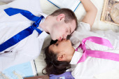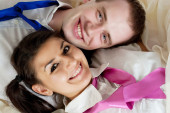 Zdjęcie "Szczęśliwy w ciąży rodzina leży na łóżku dom." może być wykorzystywane do celów osobistych i komercyjnych zgodnie z warunkami zakupionej licencji Royalty-free. Obraz jest dostępny do pobrania w jakości wysokiej rozdzielczości do 5760x3840.