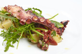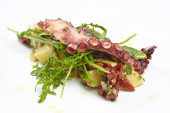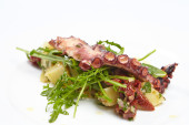 ośmiornica z ziemniakami, rukola