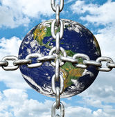 ludzkie ręce trzymając ziemi przeciw błękitne niebo - environmenta