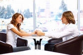 Zdjęcie "Młoda para z pierścionek zaręczynowy w restauracji" może być wykorzystywane do celów osobistych i komercyjnych zgodnie z warunkami zakupionej licencji Royalty-free. Obraz jest dostępny do pobrania w jakości wysokiej rozdzielczości do 5760x3840.