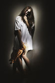 Moda piękny portret młodej kobiety (antyczny styl)
