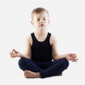 Boy.child jogi w Lotos position.children medytacji i relaksacji
