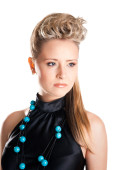 piękna dziewczyna makijaż i uczesanie na białym tle