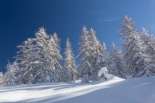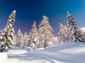 Zimowy krajobraz w pobliżu ośrodka narciarskiego Vogel w górach Julian Alps