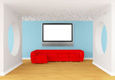 Zdjęcie "W galerii sali z czerwoną kanapę i lcd Tv" może być wykorzystywane do celów osobistych i komercyjnych zgodnie z warunkami zakupionej licencji Royalty-free. Obraz jest dostępny do pobrania w jakości wysokiej rozdzielczości do 5760x3840.