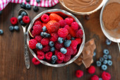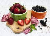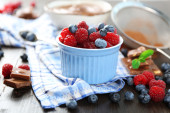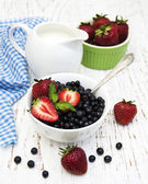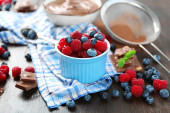 Piękna kompozycja z czekoladowy krem i dojrzałe jagody