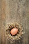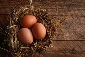 Brązowy jaj w gnieździe na ciemnym tle drewniane