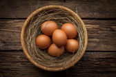 Zdjęcie "Brązowy jaj w gnieździe na ciemnym tle drewniane" może być wykorzystywane do celów osobistych i komercyjnych zgodnie z warunkami zakupionej licencji Royalty-free. Obraz jest dostępny do pobrania w jakości wysokiej rozdzielczości do 5760x3840.