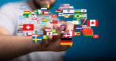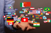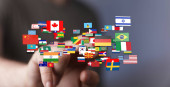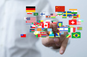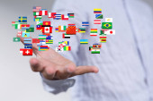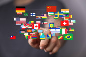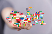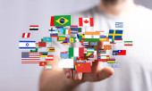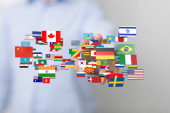 Zdjęcie "Dotykanie flagami świata: Globalizacja, Różnorodność, Społeczność międzynarodowa" może być wykorzystywane do celów osobistych i komercyjnych zgodnie z warunkami zakupionej licencji Royalty-free. Obraz jest dostępny do pobrania w jakości wysokiej rozdzielczości do 5760x3840.