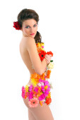Piękna tancerka w tropikalnych kostium.