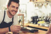 Zdjęcie "Wesoły mężczyzna właściciel kawiarni służy klienta" może być wykorzystywane do celów osobistych i komercyjnych zgodnie z warunkami zakupionej licencji Royalty-free. Obraz jest dostępny do pobrania w jakości wysokiej rozdzielczości do 5760x3840.