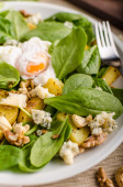 Zdjęcie "Świeże sałatki z orzechami, rodzynkami i jajkiem sadzonym" może być wykorzystywane do celów osobistych i komercyjnych zgodnie z warunkami zakupionej licencji Royalty-free. Obraz jest dostępny do pobrania w jakości wysokiej rozdzielczości do 5760x3840.