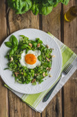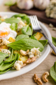Świeże sałatki z orzechami, rodzynkami i jajkiem sadzonym